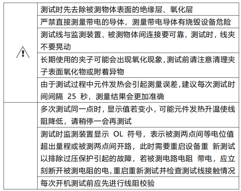 將C1、P1端接導(dǎo)體的一端,C2、P2端接導(dǎo)體的另一端,待接線無誤并確定連接良好后。按下“測試”鍵,啟動(dòng)測試,“告警”指示燈常亮,蜂鳴器發(fā)出“滴滴”的聲音,直到“告警”指示燈熄滅和“滴滴”聲音停止即測試完成。